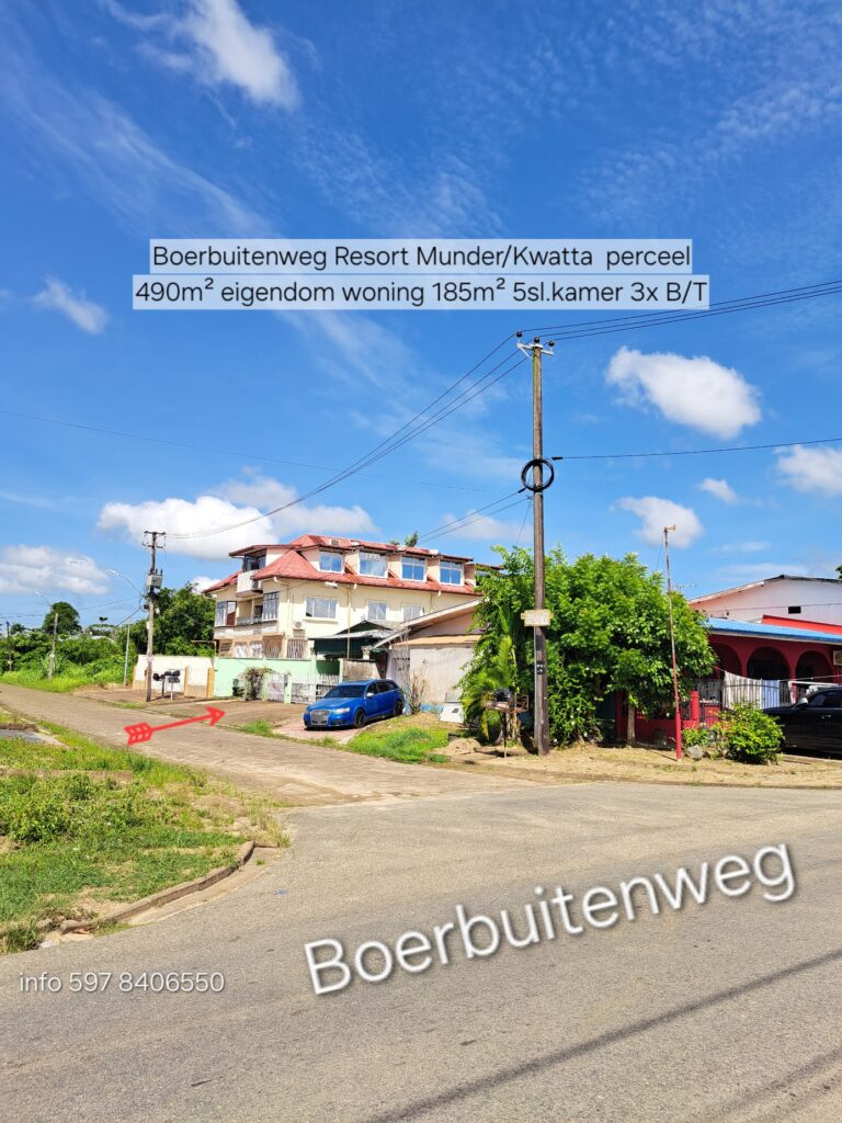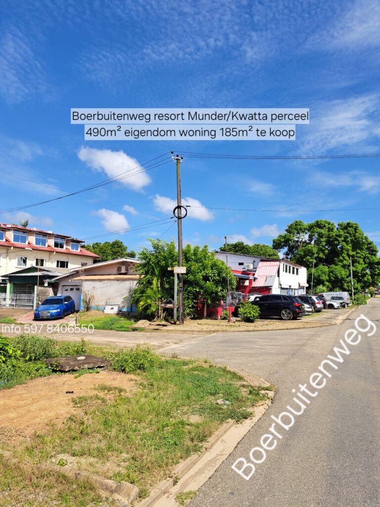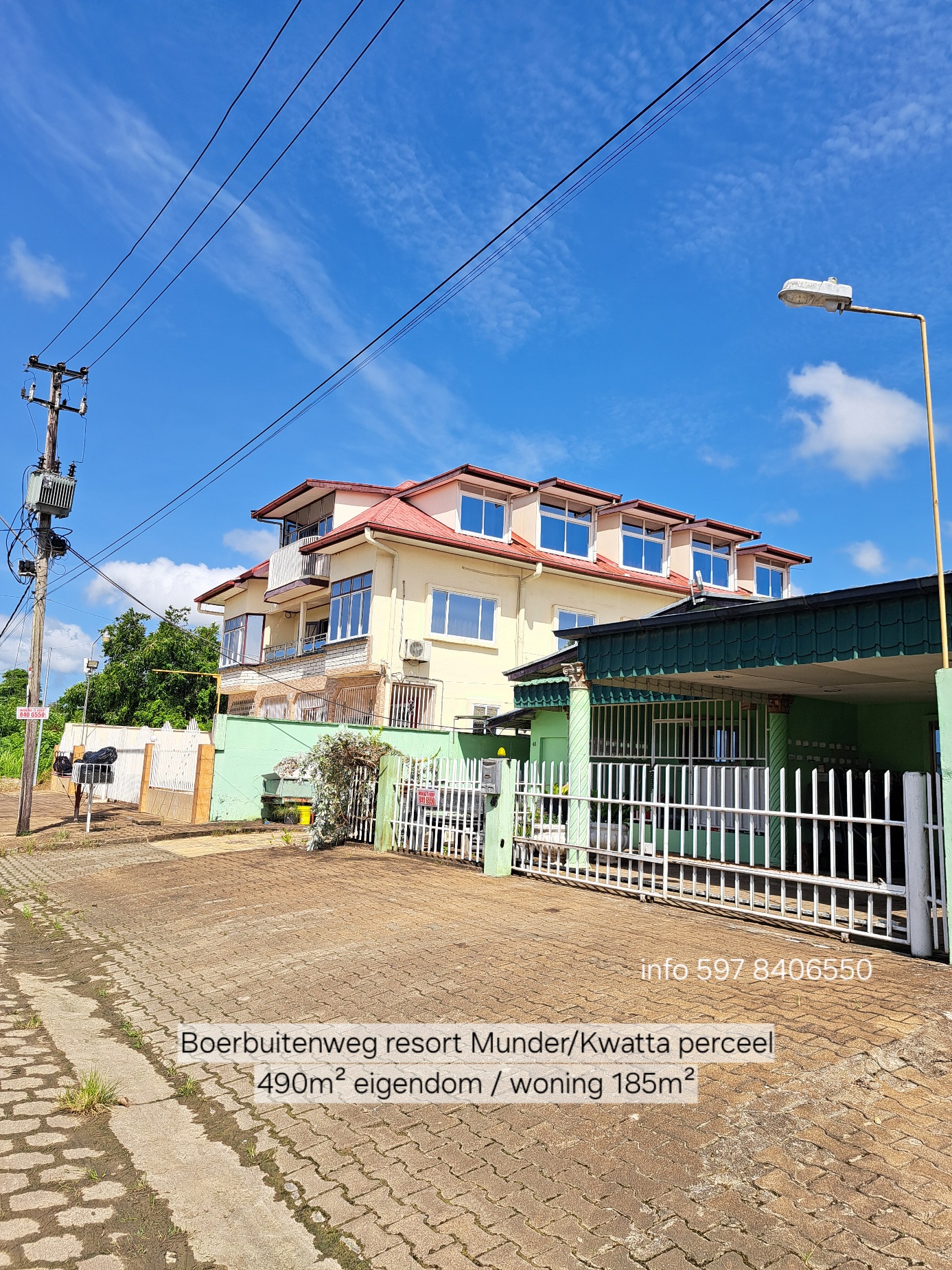 Residentieel zowel commercieel zeer geschikt. Te koop aangeboden een eigendomsperceel met een oppervlakte van 490m2 en een front van 16.25m breed bij 30m diep. Dit object staat op 450meter afstand verwijderd van de Kwattaweg. Massief gebouwd betonnen woning zo goed als nieuw, met 2x appartementen erbij. Het perceel ligt ongeveer 50cm hoger dan de straat. Gesloten riolering en het perceel is aan de voorzijde, de linker-en rechter zijde met straatklinkers betegeld. Er staat langs het pand ook een parkeerport.