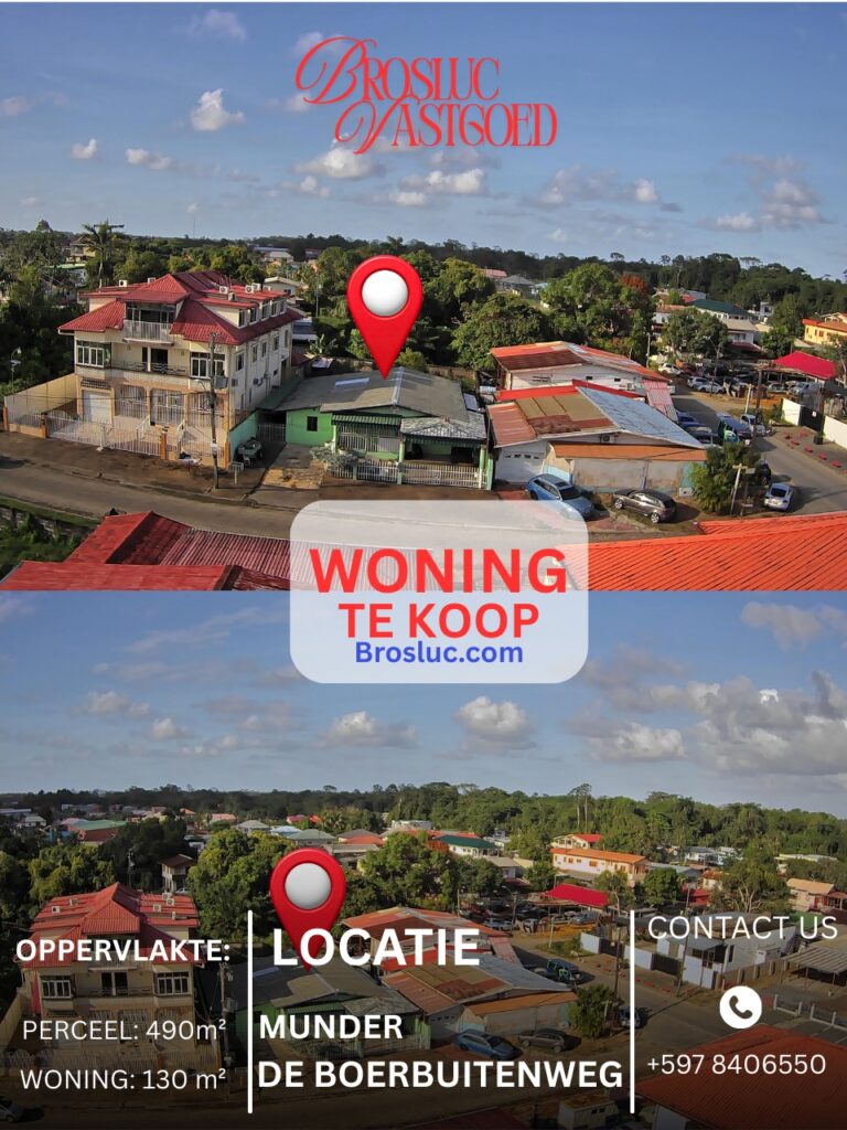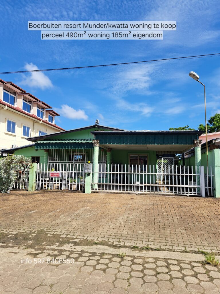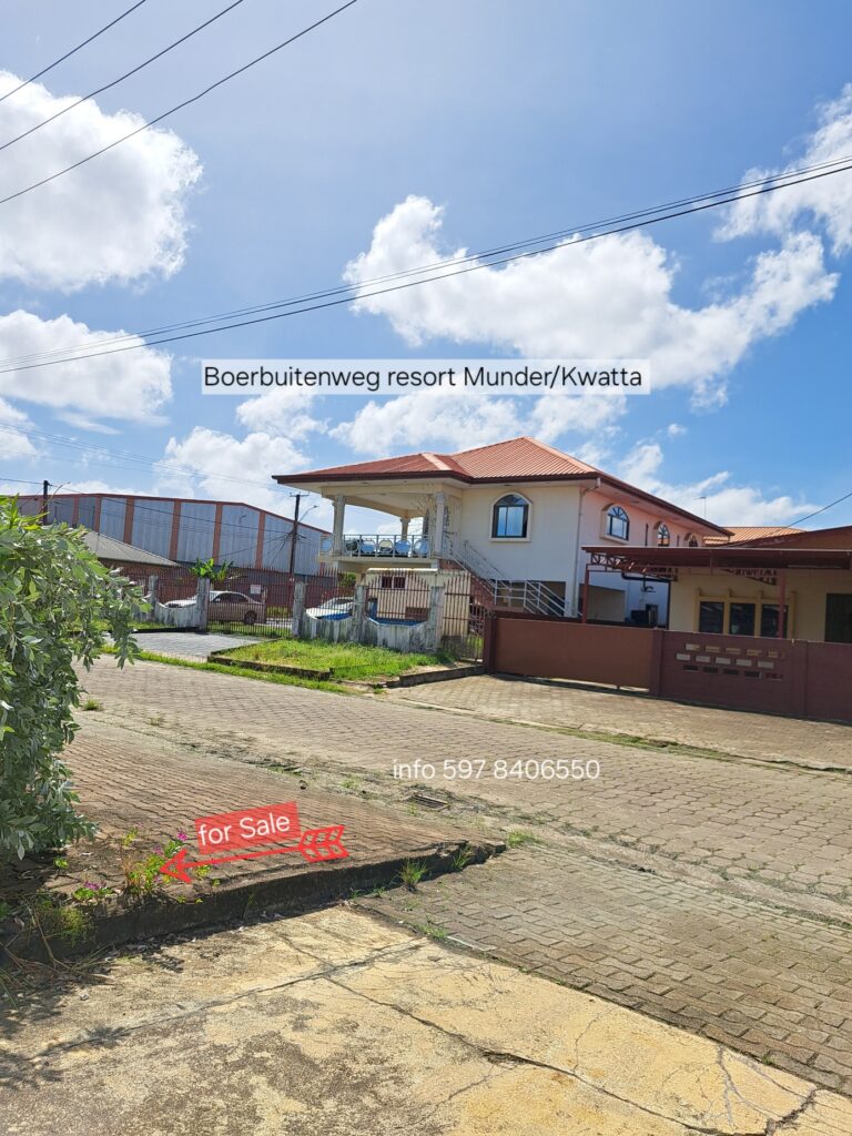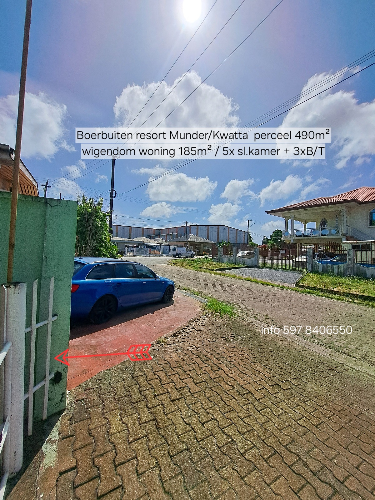 Residentieel zowel commercieel zeer geschikt. Te koop aangeboden een eigendomsperceel met een oppervlakte van 490m2 en een front van 16.25m breed bij 30m diep. Dit object staat op 450meter afstand verwijderd van de Kwattaweg. Massief gebouwd betonnen woning zo goed als nieuw, met 2x appartementen erbij. Het perceel ligt ongeveer 50cm hoger dan de straat. Gesloten riolering en het perceel is aan de voorzijde, de linker-en rechter zijde met straatklinkers betegeld. Er staat langs het pand ook een parkeerport.