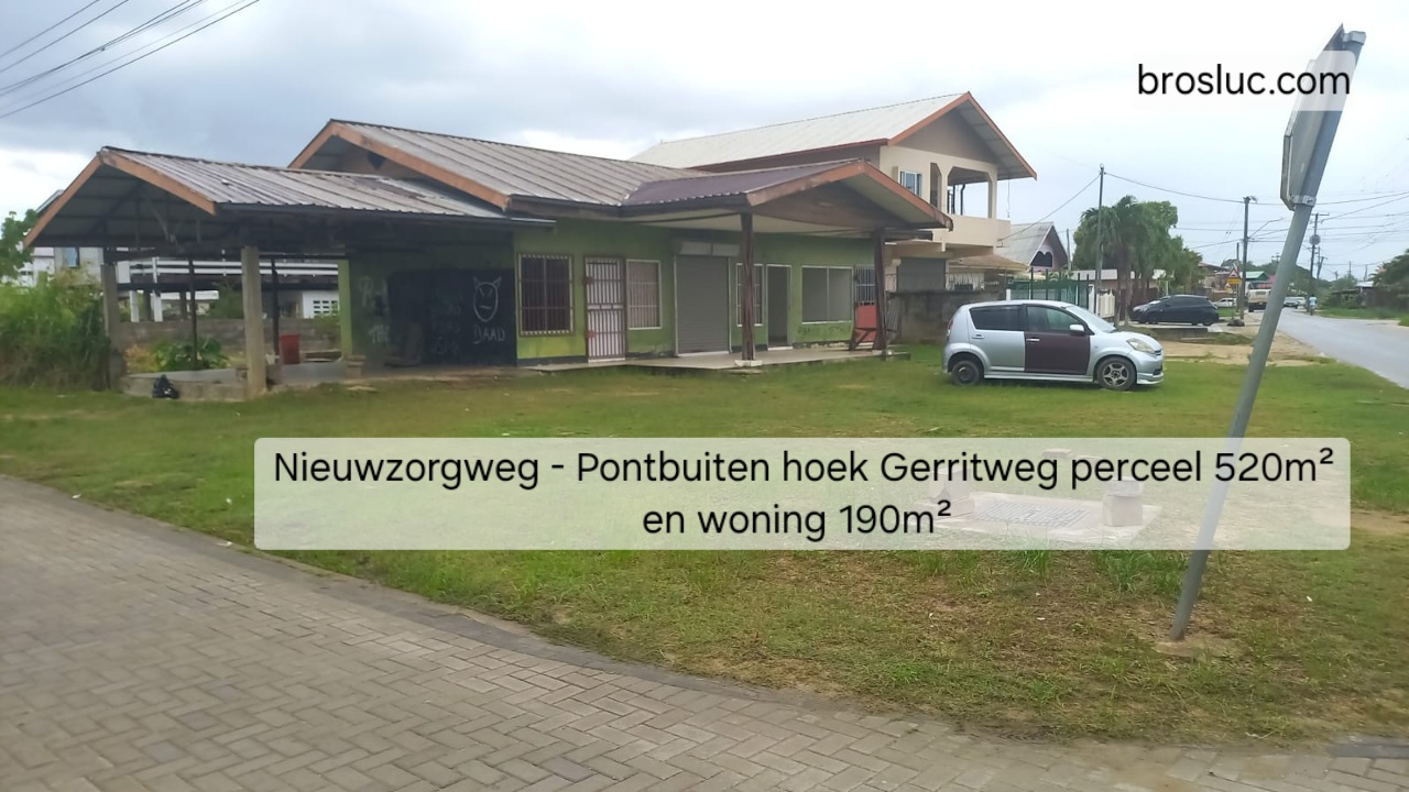 Hoekperceel met een nette woning te gebruiken als winkelpand. De titel is eigendom en heeft de afmetingen 20m aan de Nieuwzorgweg en 26m aan de Gerritweg. Vanuit de Hiraweg is het hoekperceel op 280m verwijderd, zeer gunstige ligging aan de geasfalteerde Nieuwzorgweg. Woonoppervlakte is ca.190m2 .Gelieve de koopsom giraal over te maken.