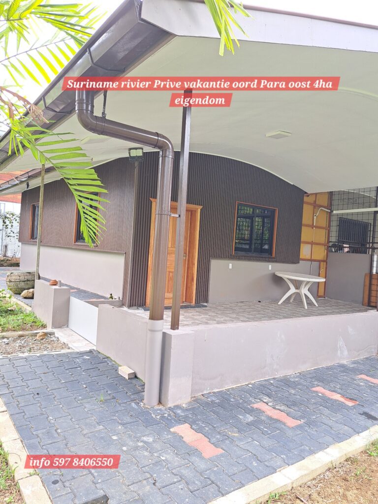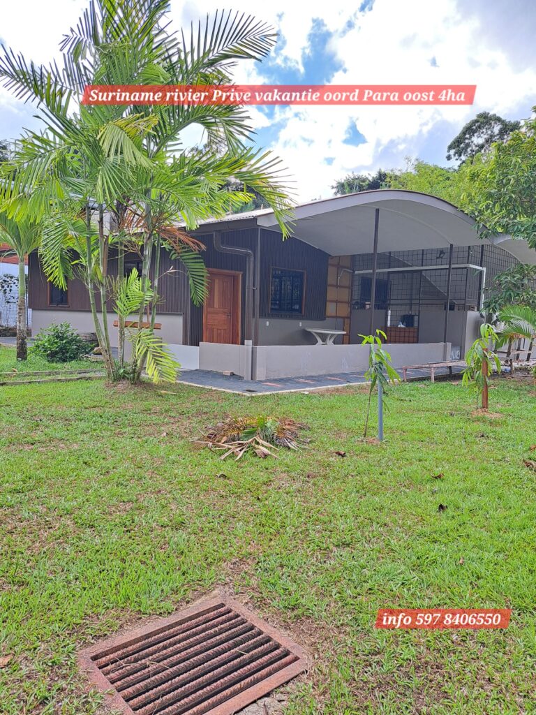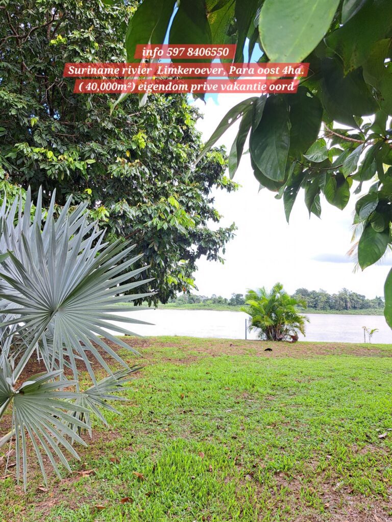 Ontzettend mooie vakantie oord, makelijk te bereiken via de Sir winston Churchillweg en slechts op 2km afstand verwijder van Domburg markt. 4Ha eigendoms perceel, met een front breedte van 50 meter langs de Suriname rivier. Op het terein langs de rivier is reeds een duurzame betonnen-fundering aangelegd om de grond langs de oever te beschermen tegen water -en winderosie.