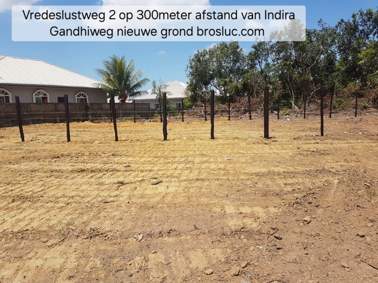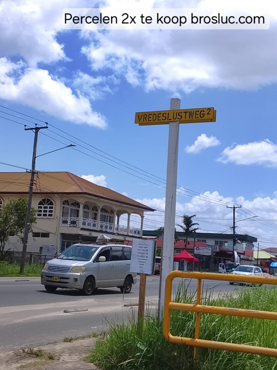Slechts 50m vanuit de geasfalteerde Vredeslust2 weg en slechts 300meter vanuit Indira Gandhiweg. Zie winkel centra, de Zondaagse markt, Sol benzine pomp, in de omgeving. De titel is eigendom. Frontbreedte is 16mx L30.5m. De kavels worden ook per stuk verkocht euro36,500.-