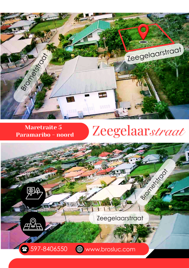 Wijk achter Kwantai restaurant gevestigd aan de Gompertstraat. Eigendoms perceel ruim 450m2 met een front van 18m breed bij 25m lang. Zeegelaarstraat heeft een geasfalteerde wegdek. Residentieel super geschikt en commercieel goed voor een online shop. Tenminste 60% giraal betalen en 40% contant betalen wel mogelijk. Overdrachtskosten verplicht. Perceel ID is wel beschikbaar.